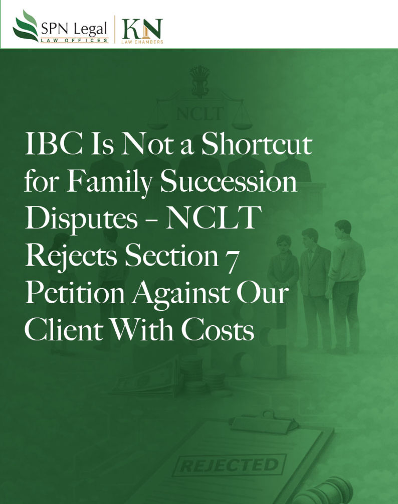 We recently represented the Corporate Debtor in a petition under Section 7 of the Insolvency and Bankruptcy Code, 2016 (IBC), where the applicant sought initiation of CIRP on the basis of an alleged unsecured loan advanced by a deceased family member.